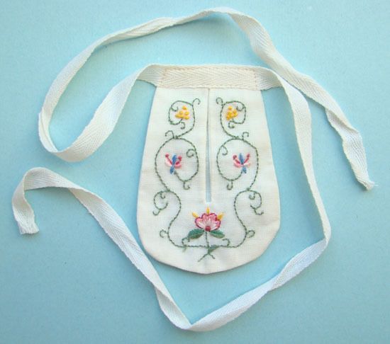 Felicity’s pocket had pretty embroidery, but, even at 6, I remember thinking that the concept of having to root through layers of fabric just to get to a spare pin or some egg money somewhat ridiculous. And yet, when they were first introduced, pockets were somewhat revolutionary themselves, for they allowed women to conduct errands of commerce and pay social calls without having to rely on the long-extant pockets of the menfolk. Women, needless to say, loved them. The Victoria and Albert Museum rounded up a number of pocket-related writings, among them a raison d’etre from the inestimable Teresa Tidy: