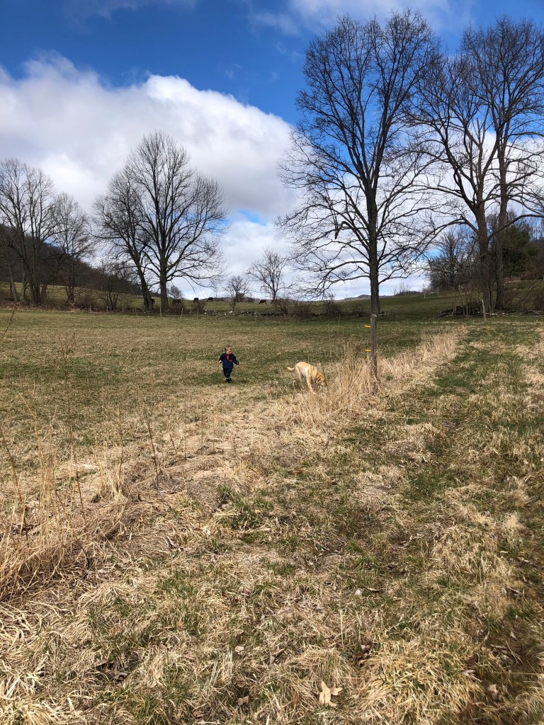 Yesterday, Perry happily followed my father around the fields as he mended fences. “Pass me the screwdriver,” my father would say, and Perry would fish it from the big orange bucket. Perry knows hammers, wrenches, pliers, both types of screws. He knows excavators and tractors and rototillers. Construction equipment lies in the intersection of Pownal and Brooklyn.