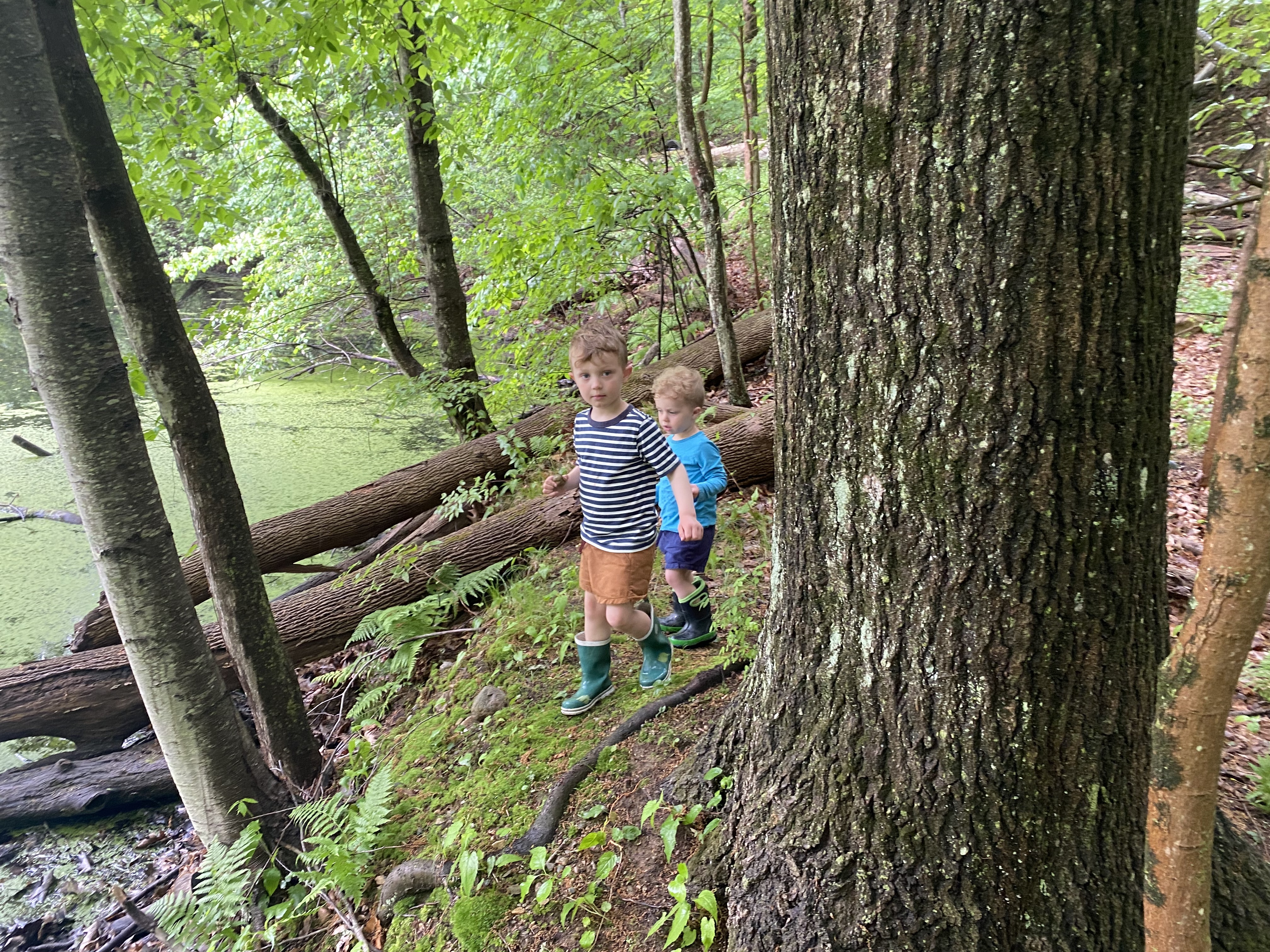 Yes, yes this narrow place with its crimped, muted beauty is thrumming, gaining lushness exponentially. One morning, the dale in the town forest is dotted in fine green quills; a day later, the quills have unfurled to feather-width ovals; now, above each pair of ovals rises a single, slim shoot with a spraw of white blossoms, infinitely tiny. Canadian mayflower. Under the hemlocks and rhododendron in our yard, the real lilies of the valley are following more cautious suit.