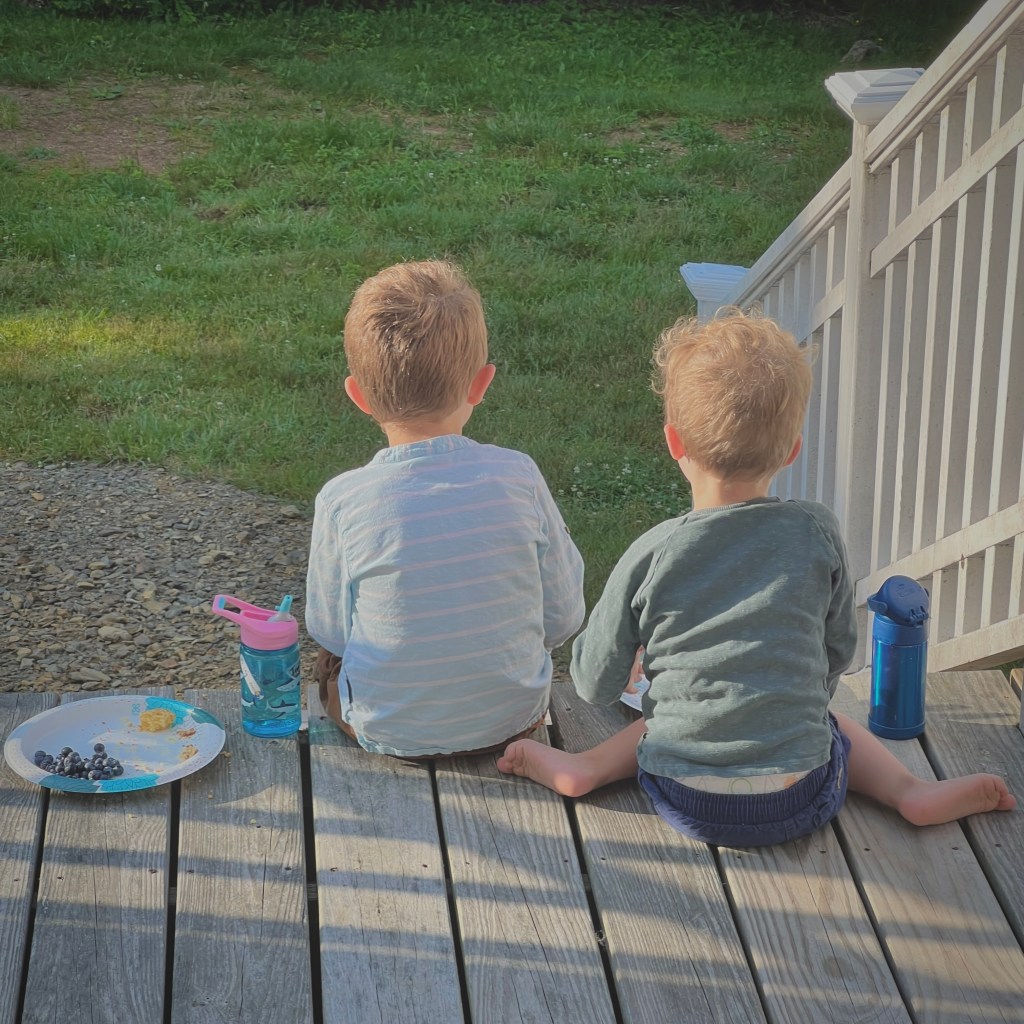 Summer’s ebb. Dark, now, when I creep down the stairs at five thirty. The tail end of nautical twilight, according to our local meteorologist, who has assumed, during this drought, a messiah-like status. The driest summer on record; the second-hottest. Grass like fried shallots, lily of the valley like corn husks. Herbs, lettuces in short supply. Though a good summer for thunderstorms, and tomatoes. Ottelie learned to walk; she takes the careful, staggering steps of the very drunk, and waits for us to clap. Both boys learned to swim.