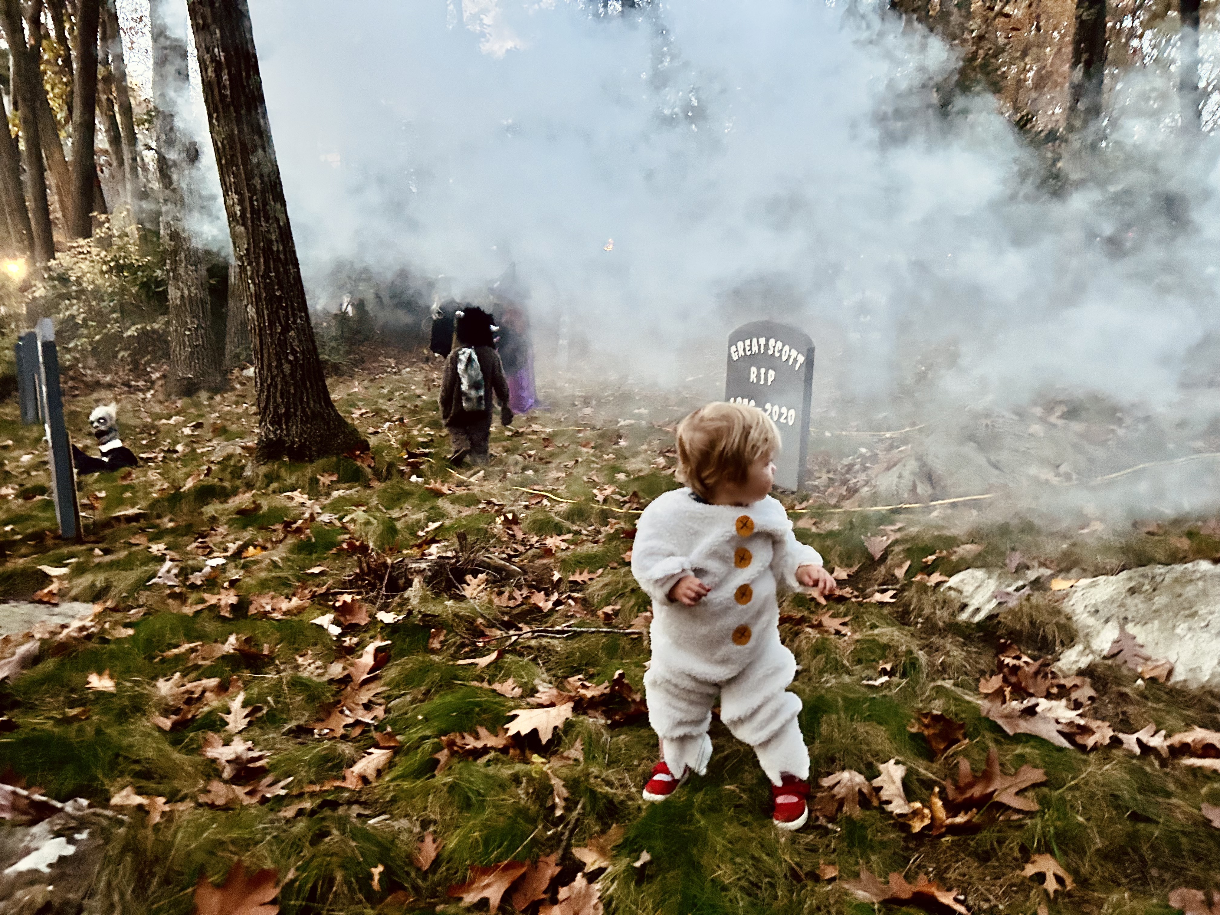 At night, I tell the boys scary stories. I make them up on the spot, or weave spooky elements to existing skeins of stories. Once upon a time, there were two boys who lived with their parents in an old white house on the top of a hill. Perry, ever the anticipator, writhes, twists his blanket, tenses, moans.