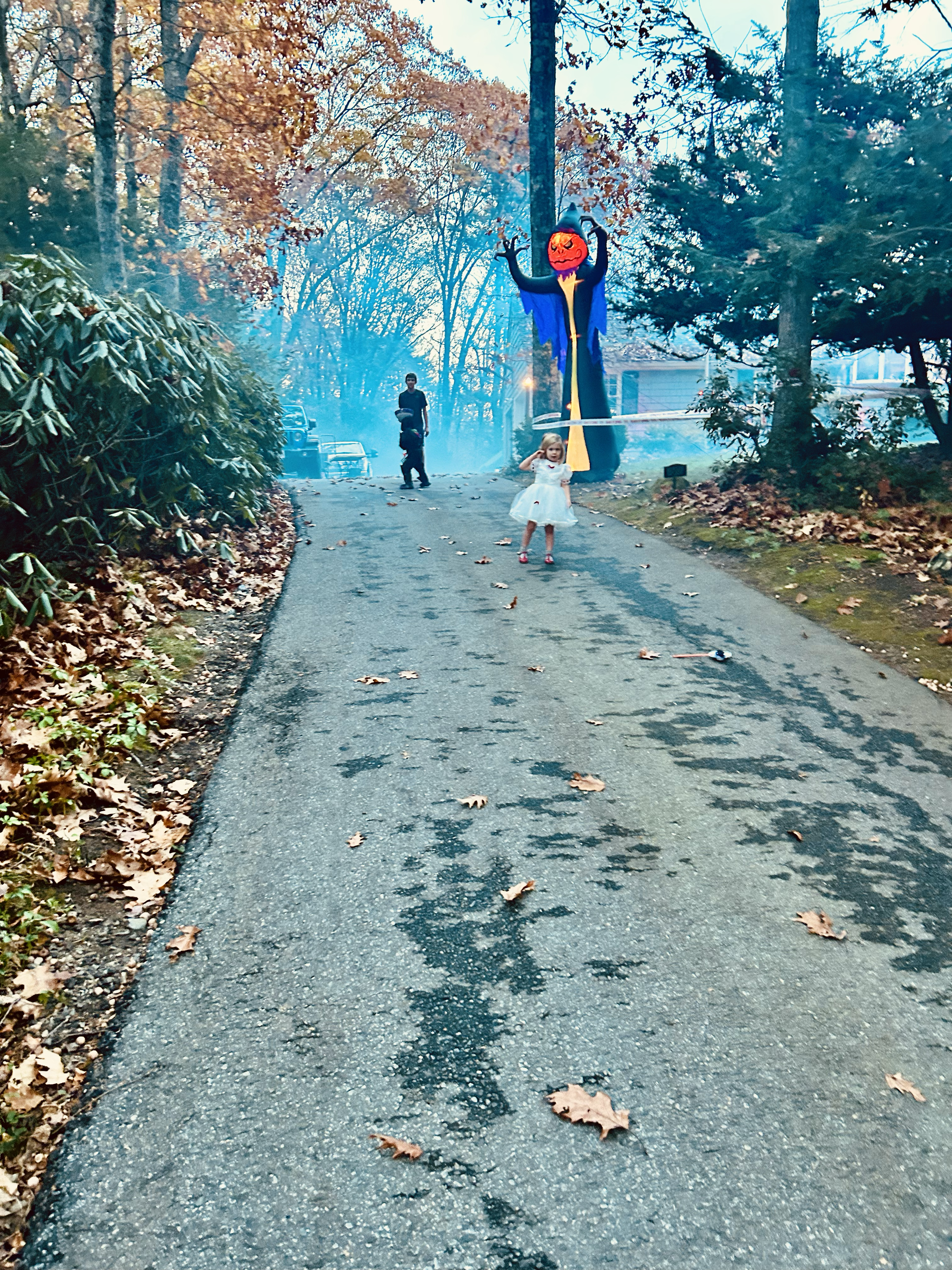 There is one day towards the end of September where for some reason it is just Ottelie and I and we go to walk and scooter around Wellesley College. She rockets down too-steep hills on her scooter, and makes light, clattering work of the boardwalk. On her own, she is not forever rushing to catch up. I listen as she houses her school friends in the campuses many towers. To Maddie goes the cathedral; to Teddy, the windowless smokestack. How will you visit him? A ladder. And for Halloween, they’d all come out. And who lives in the cathedral? And who lives in the tower? And when was Halloween? Ottelie’s stories have a circular shape, a techno pitter patter. She has to get one rotation in before you get how it clicks.