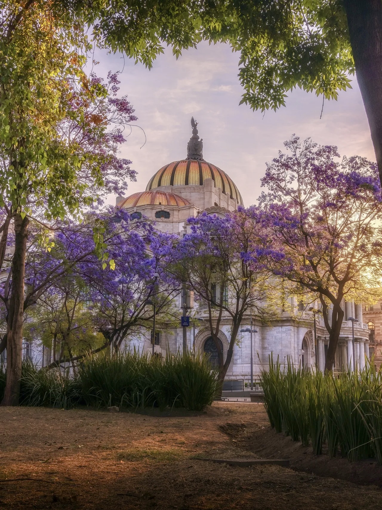 We return from the pyramids into the dappled hush of the city and eat vegan chilaquiles, slippery with mushroom and sturdy poblano mole, and admire the many dogs of all sizes that heel and lay at attention among the roots of a giant sweetgum tree in Parque Mexico. I buy a new notebook and a brand of italian pens from a cobalt-blue stationary shop in the leather district and sit on one of the benches along the interior allee of Durango Street and start to write about the tunnel. But I am all too easily distracted by the jacarandas. From mid-February to April, the trumpet-shaped blossoms are one of the city’s defining features, for all they were only introduced in the 1930s, by a renowned Japanese landscape architect and gardener who had for decades been transforming the grounds and forest around Chapultepec Castle and providing floral arrangements for the city’s Porfirian elite. The jacarandas are the sort of amethyst blue, crepuscular blue, that demands your attention: lambent, astonishing. They are everywhere and the light that streams through them is almost religious. But no sooner have I written this down than I spot a fruteria cart and get up to order a plastic cup of fat white jicama spears, livened with lime juice and glittery red tajin. The two women behind me, dressed crisply, in skirt suits and low heels, with little badges clipped to their blazer pockets, chat with the vendor as I hunt for a lower denomination of peso. How is her grandmother doing? Out of the hospital?