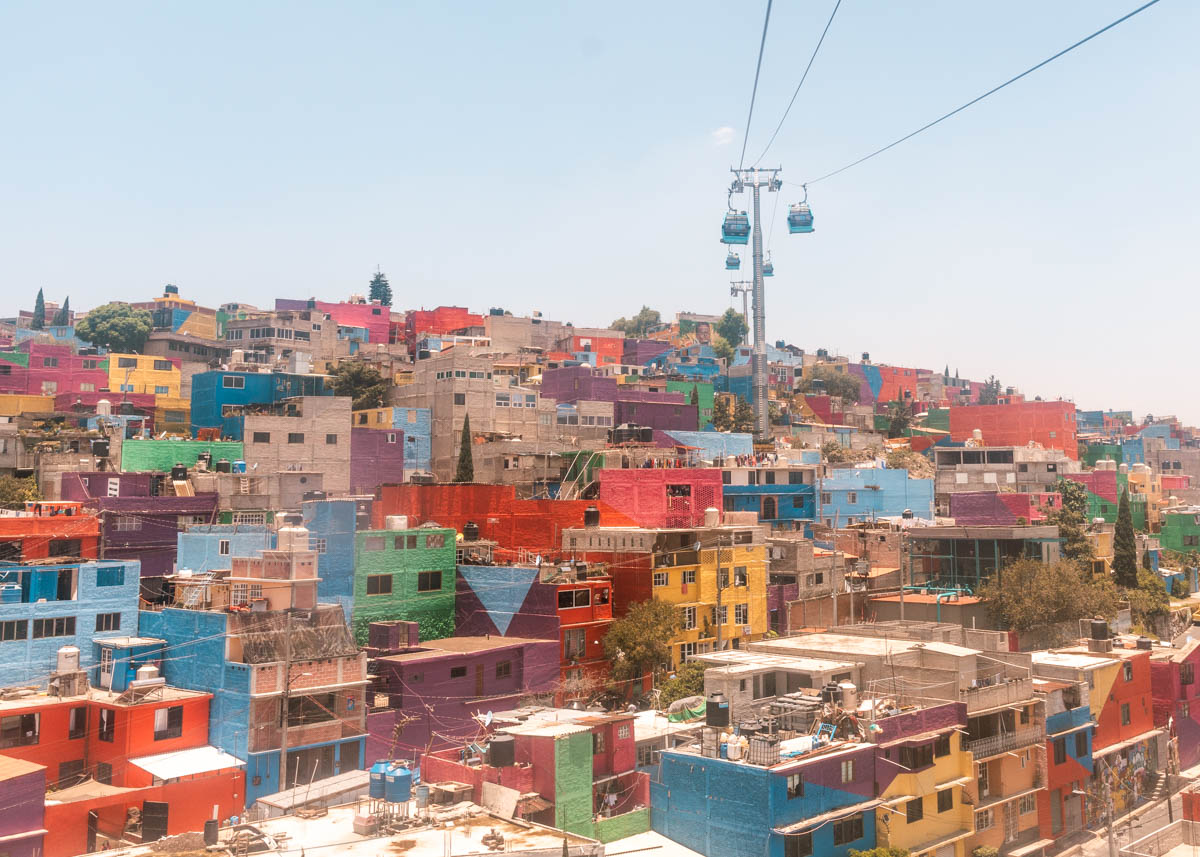 Thousands of small stucco homes in parched blues, coral, mint, clementine are stacked into the flanks of the Sierra de Santa Catarinas, a welted chain of cone ash volcanos that rise from the plateau like tortoise shells or a particularly bulbous iguana. There are no roads in these neighborhoods, only alleys that wend nearly invisibly between the homes. To leave, most residents take a cable car down to the flats, and then transfer to the subway or bus. A simple idea, the cable car: conducive to a hilly city with a low-slung and sprawling footprint. In the four years since the first line was built, the city’s government estimates that overall commute times have dropped by half. The government arranged for murals to be painted on the flat roofs of the homes, so that the commuters, gazing out from their glass boxes, would have something to look at, and the people who lived in the homes would have a measure of privacy. At home, my children will marvel over this new old transit option: a zipline, like flying.
