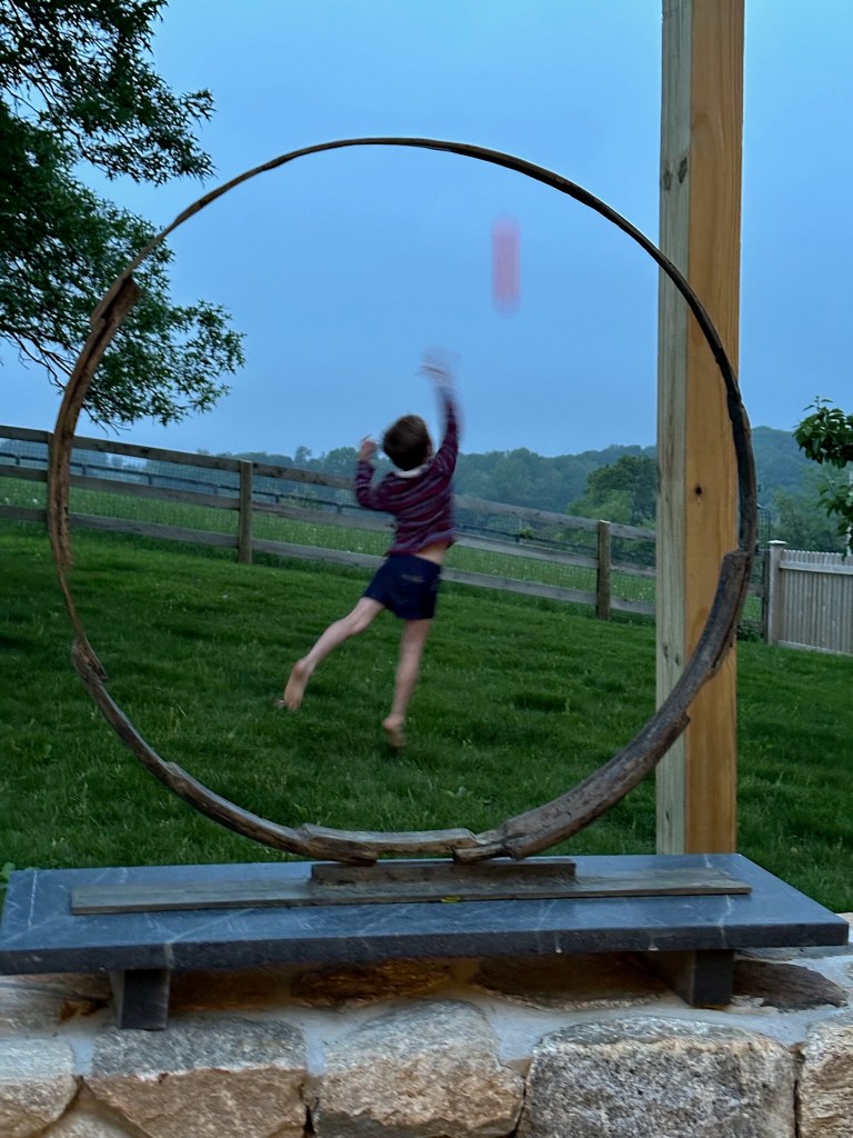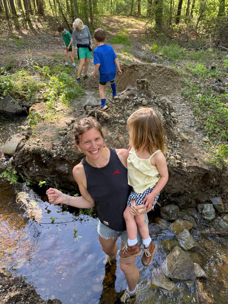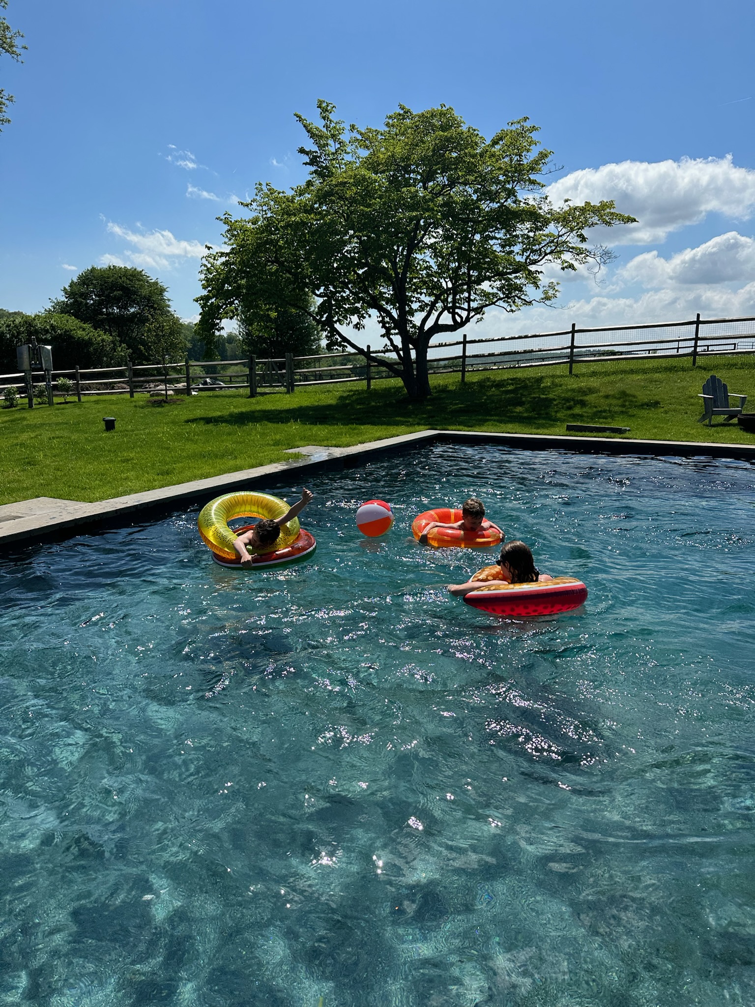 This is the first summer that all three kids are swimming; if Ottelie is less confident in water above her head, she is also more cautious; content to watch as Peregrine dives after brown trout with a clear pink bucket. Irving follows the slavic cycle of plunge:warm, lying chicken wings up on the sun-baked dock.