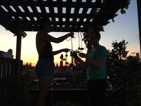 My friend A and I are walking to meet my sister in Fort Greene. We are tardy, because we have been gabbing in our hotel room and drinking little cans of pinot noir from the mini fridge and time has slipped away. It is a hot night in july, a summer friday night in new york and it will be quiet, i think; i remember how quiet fort greene would get on a summer weekend; conspiring to make me think i should be somewhere else, even though it was nice having the run of the place. But tonight it is thrumming, and everyone is young. On the plaza beside the whole foods on Fulton, women in crochet bikini tops are dancing in whipsawing segments, like a snake, while a few older men hand out little bottles of syrup, pink and lilac and clementine.