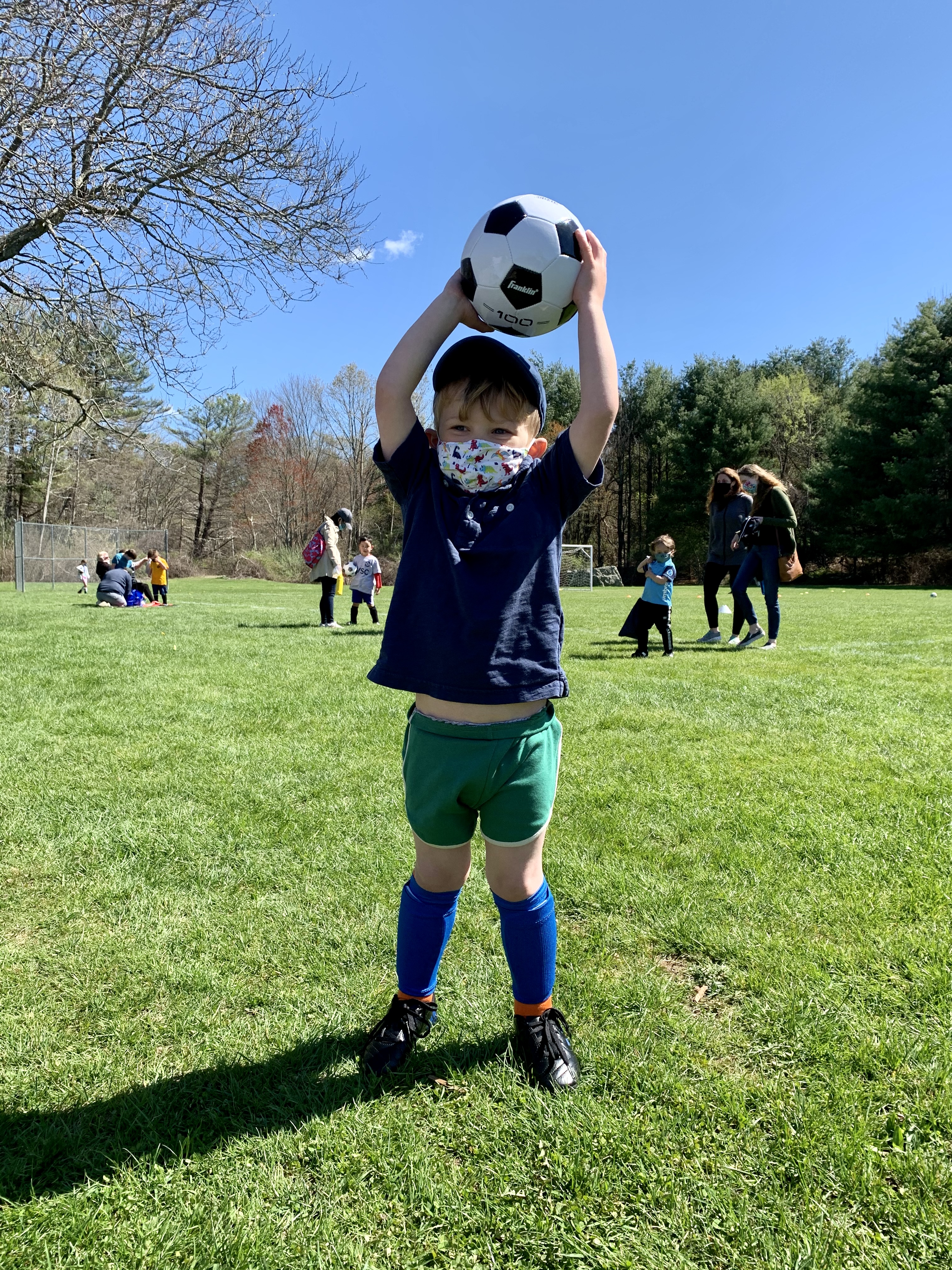 This might have been embarassing had most of the other three year olds not been refusing to leave their parents’ laps, or pulling off their shin guards, or chewing, introspecively, on one of the little plastic field markers.